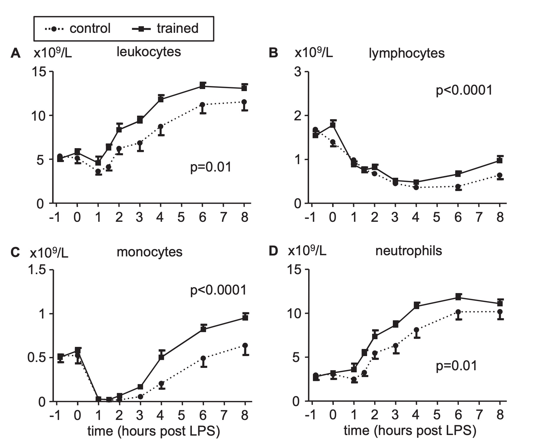 Supporting Information, Leukocyte and subpopulation concentrations during endotoxemia in control and trained subjects